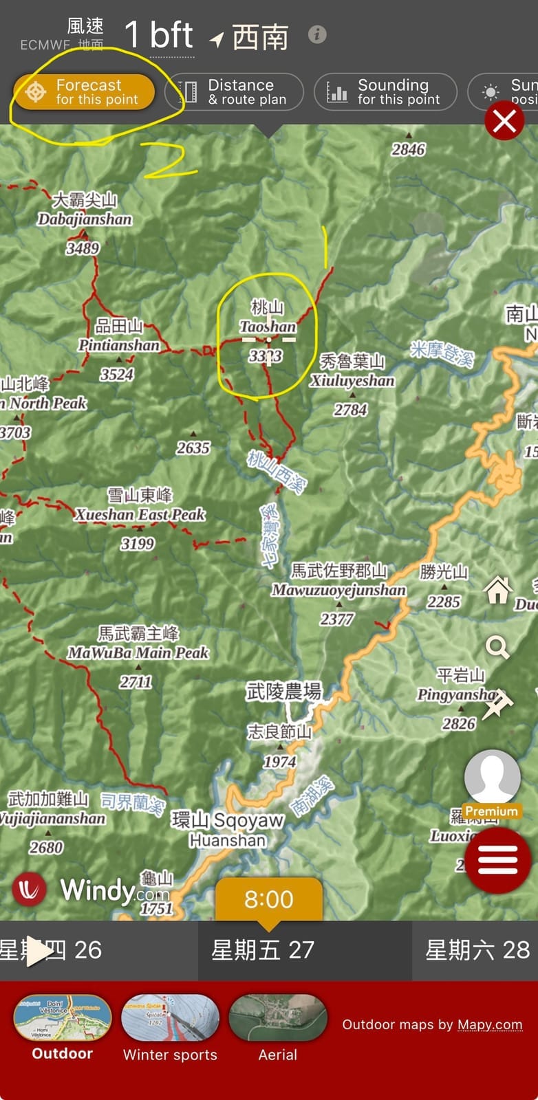 - 學會判讀Windy的氣象圖,預測山上會看到大景或是會遇到白牆