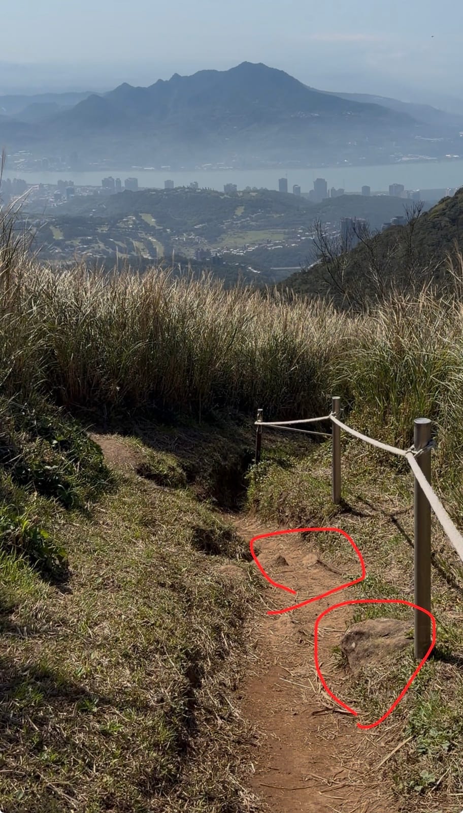 情境 A:陡峭的土徑與防火道 (如:大屯南峰、西峰下山路)