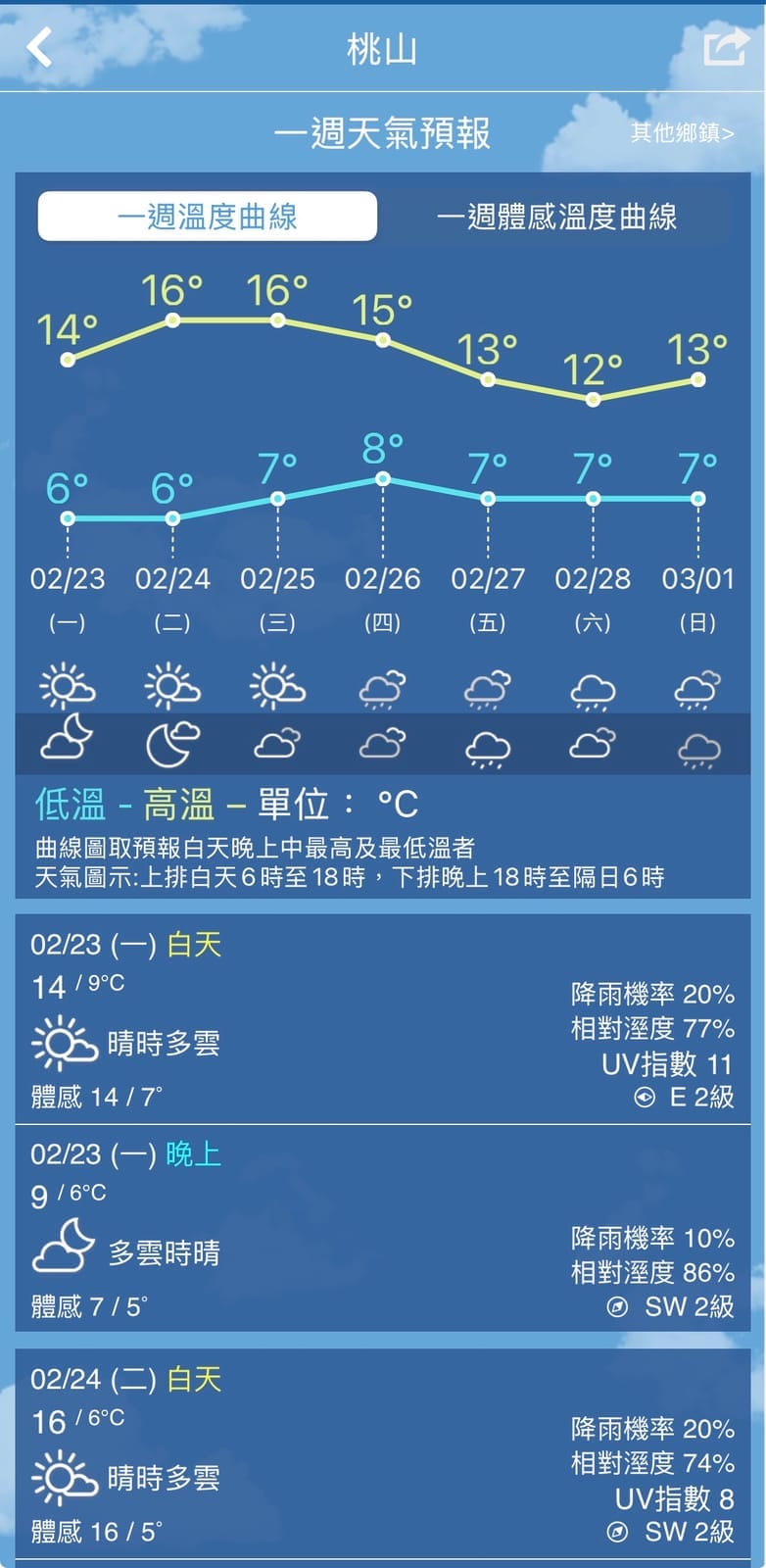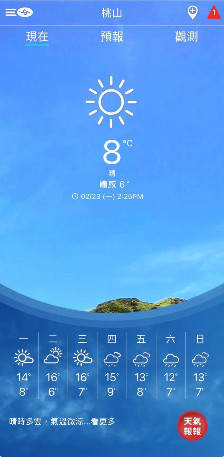 - 進入後,你會直接看到桃山的即時天氣預報。