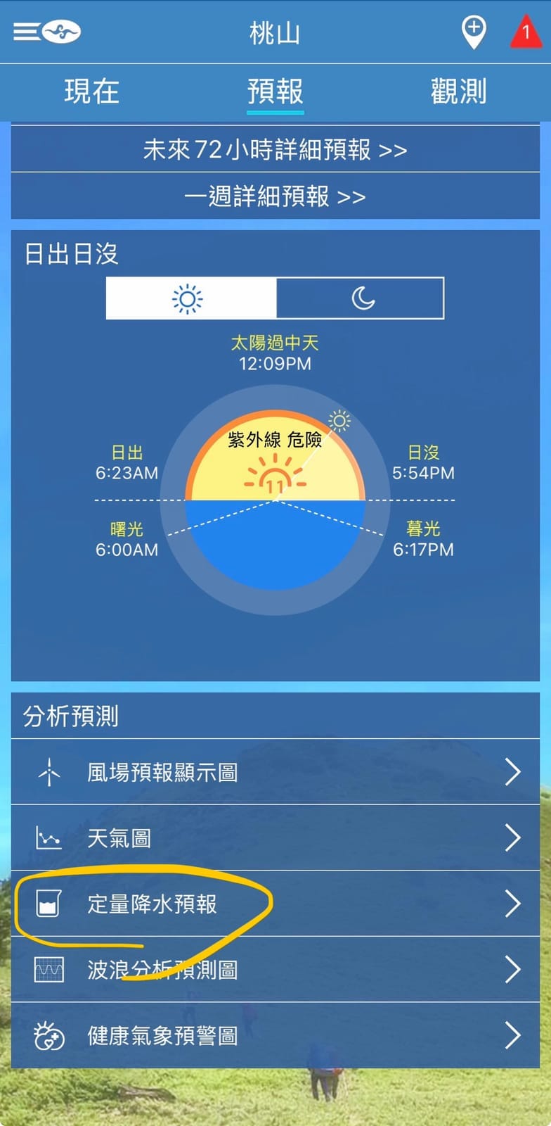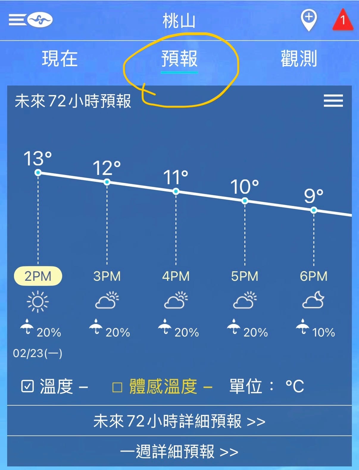 當時間來到出發前 72小時,請回到桃山的「預報」專頁。