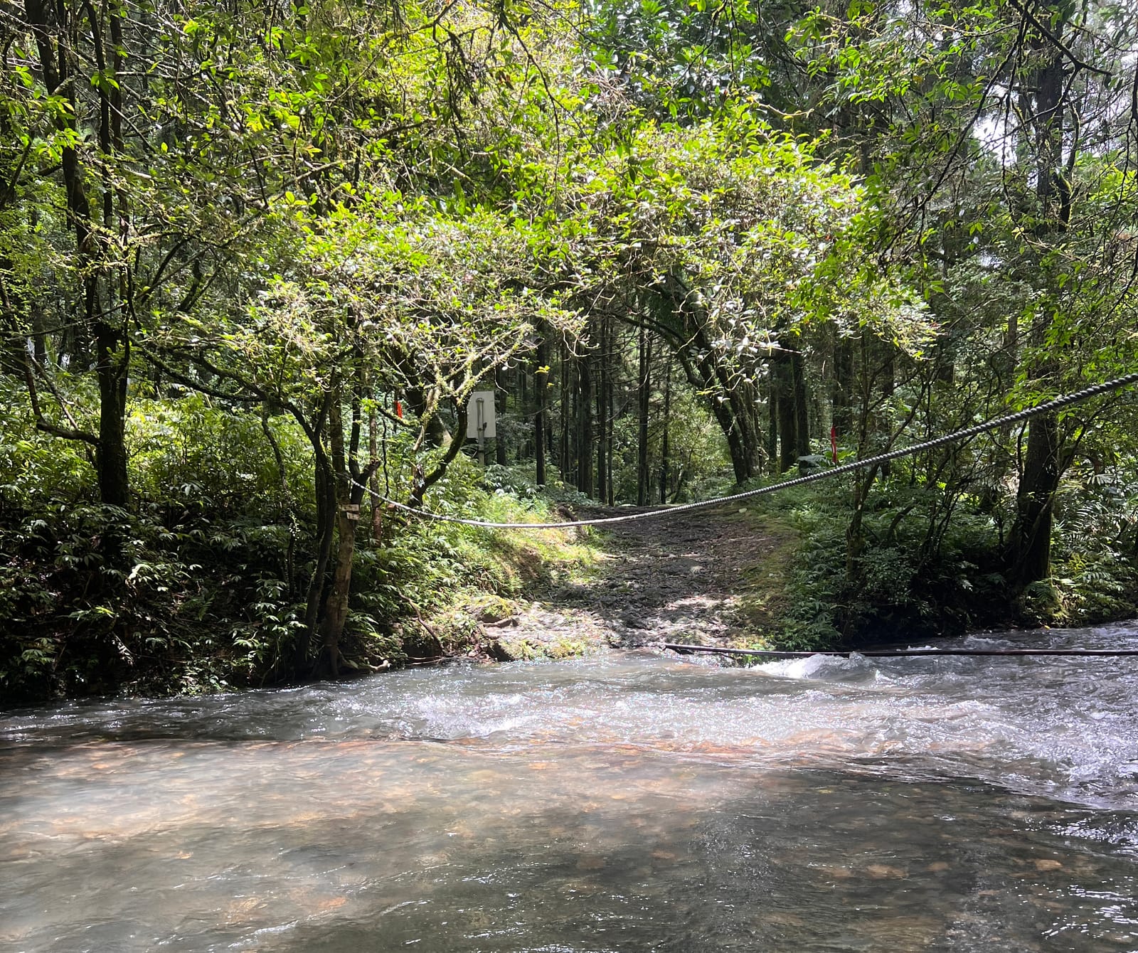 - 中坑古道需多次渡溪,大雨後溪水暴漲禁止進入